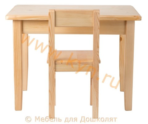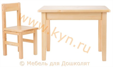 Для детей от 3 до 5 лет. Размер столешницы 700*500 мм, высота стола 520 мм. Габариты стола (ширина х глубина х высота) - 700 х 500 х 520 мм, габариты стульчика (ширина х глубина х высота) - 280 х 320 х 580 мм. Высота у стула от пола до сиденья 300 мм. Натуральное дерево - массив сосны, покрыт лаком. Гарантия на комплект - 1 год. Срок службы - не менее 5 -ти лет. Если вы затрудняетесь с выбором - звоните, и мы подберем подходящий набор!